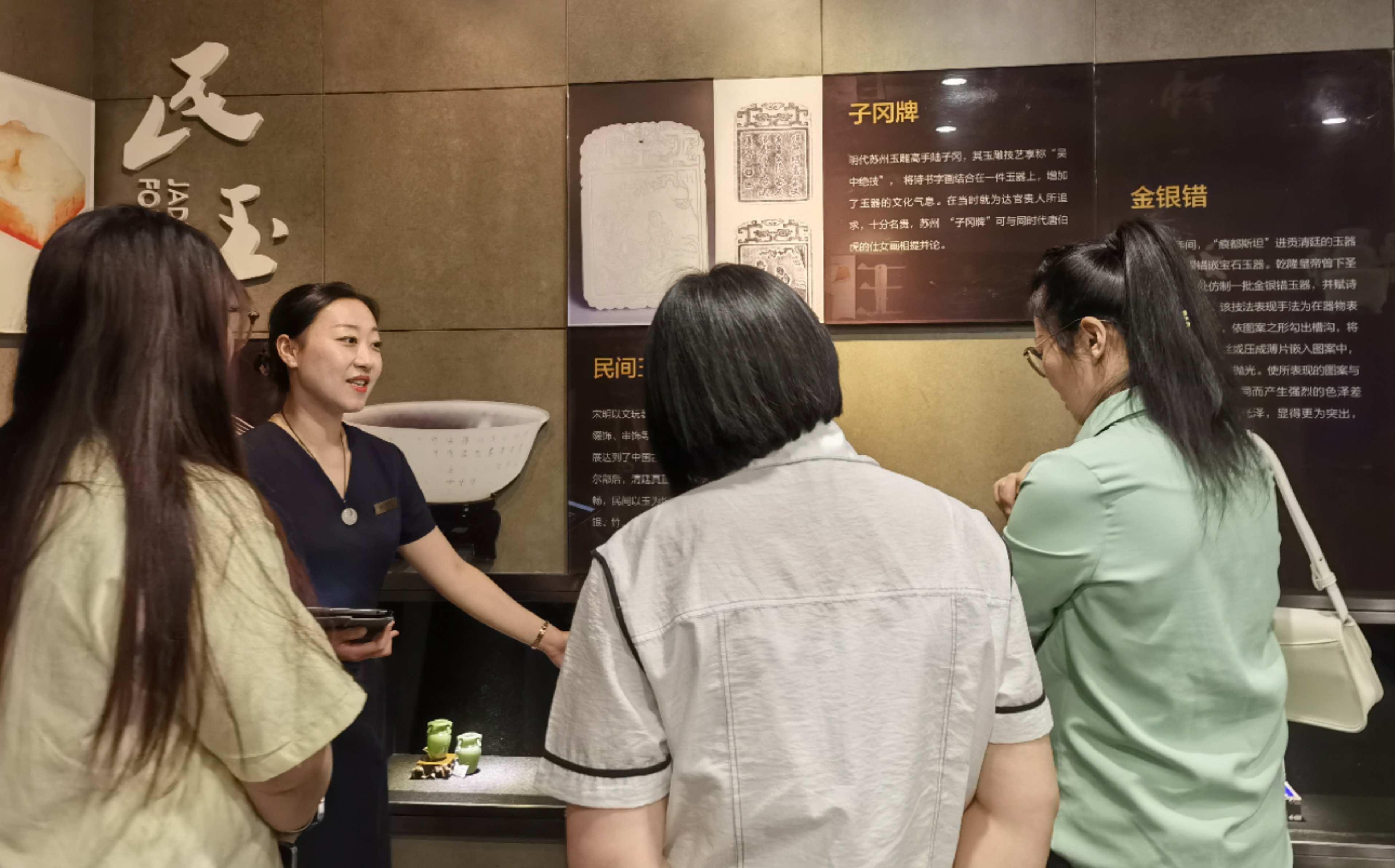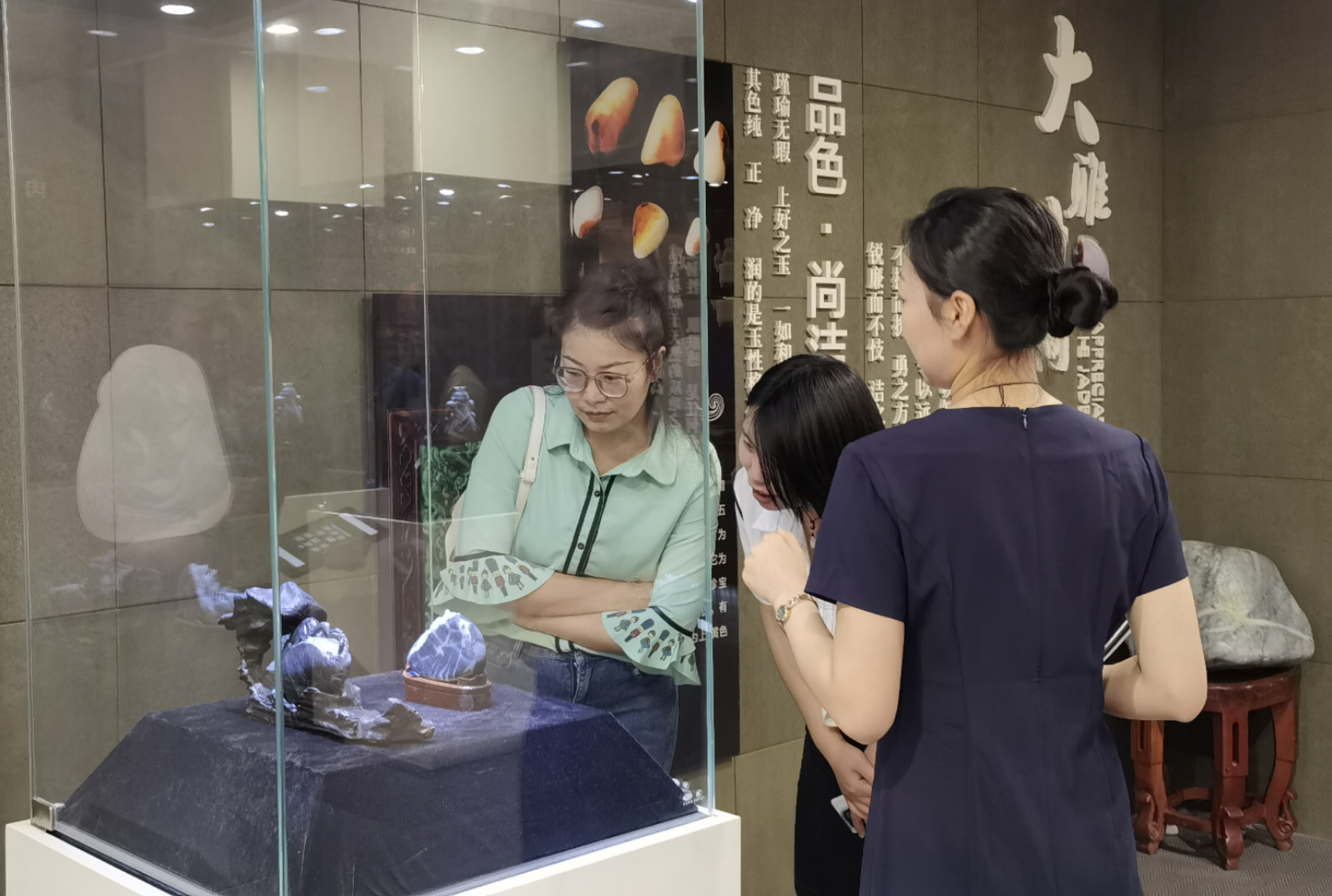 据了解,早在2013年,新疆国玉和田玉集团股份有限公司投资数亿元,分别在北京、新疆两地打造了两座面积1000平方米的新疆和田玉文博馆。展陈包括天赐篇、采玉篇、历史篇、琢玉篇、现代篇、和田美玉影院六个部分。从和田玉历史文化展示、矿产资源分布、标本展陈、古代采玉琢玉方法、现代雕刻技艺发展、收藏级玉石作品鉴赏等方面多角度展现和田玉文化内涵。通过"以玉载道"的展陈理念,完整呈现了和田玉作为中华文明重要载体的历史脉络,打造了集研究、收藏、展示、教育于一体的和田玉文化殿堂。